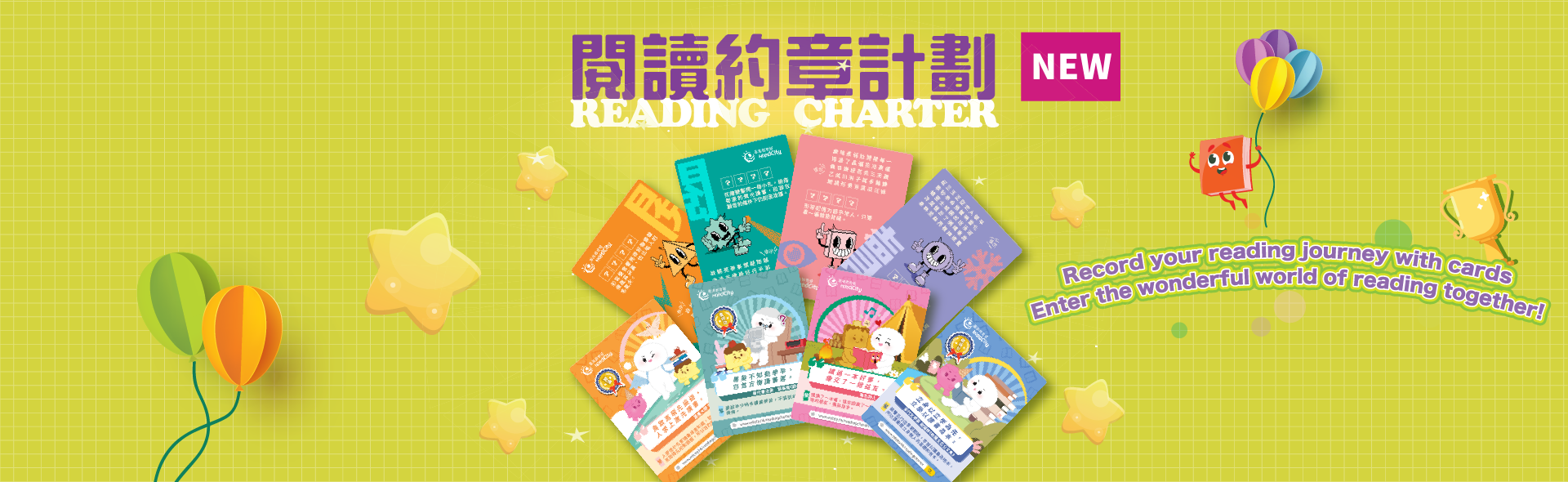 The scheme offers two sets of eight Reading Charter Cards. Students are encouraged to collect the cards while they read. Each phase includes Gold, Silver, and Bronze Reading Medals. Parents and children are encouraged to set yearly reading goals together and to read widely across different types of books, enriching both their knowledge and their parent‑child bond.