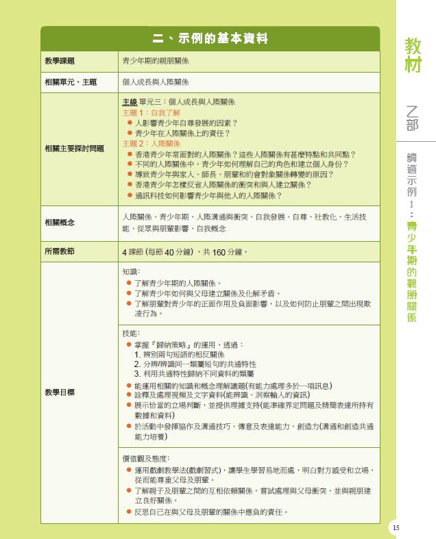 教师可参考不同的调适策略及示例,在分析学生的学习特性后,针对他们的学习需要而运用适切的调适策略。教师亦可依据校情,将本资源套与《通识教育科课程资源册系列》混合使用,以更有效地在课堂中照顾读写能力不同学生的学习需要。