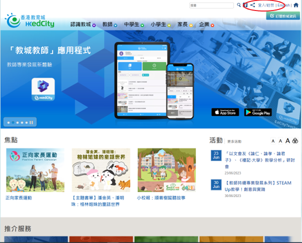 校方可向教城申请启用简易登入服务,申请详情请参阅︰简易登入服务指南