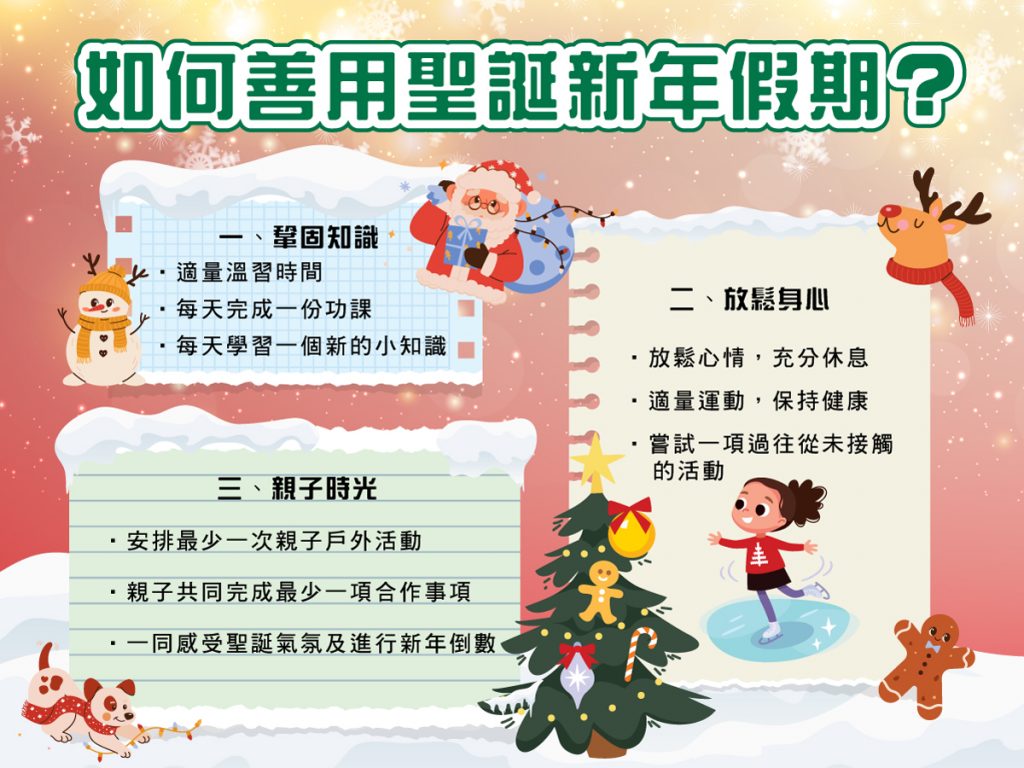 透过规划圣诞新年假期,子女既能收获知识、放松身心,又能在亲子互动中感受家庭的爱,以更加积极的状态迎接新的一年。