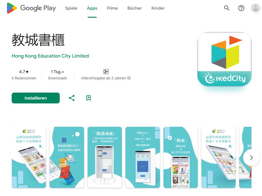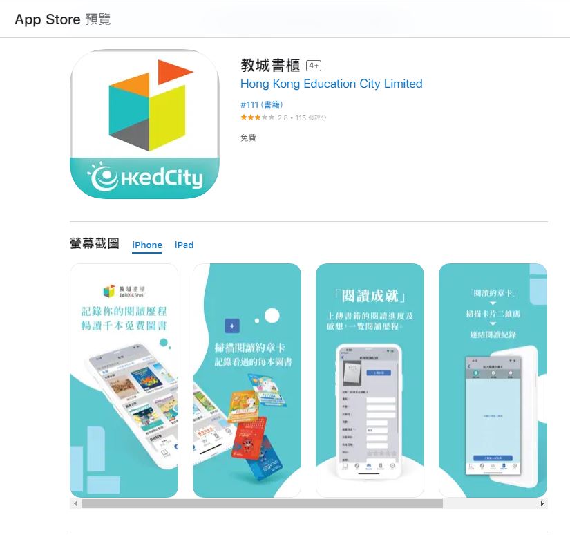 1. 在App Store 或 Google Play 下载「教城书柜」应用程式。