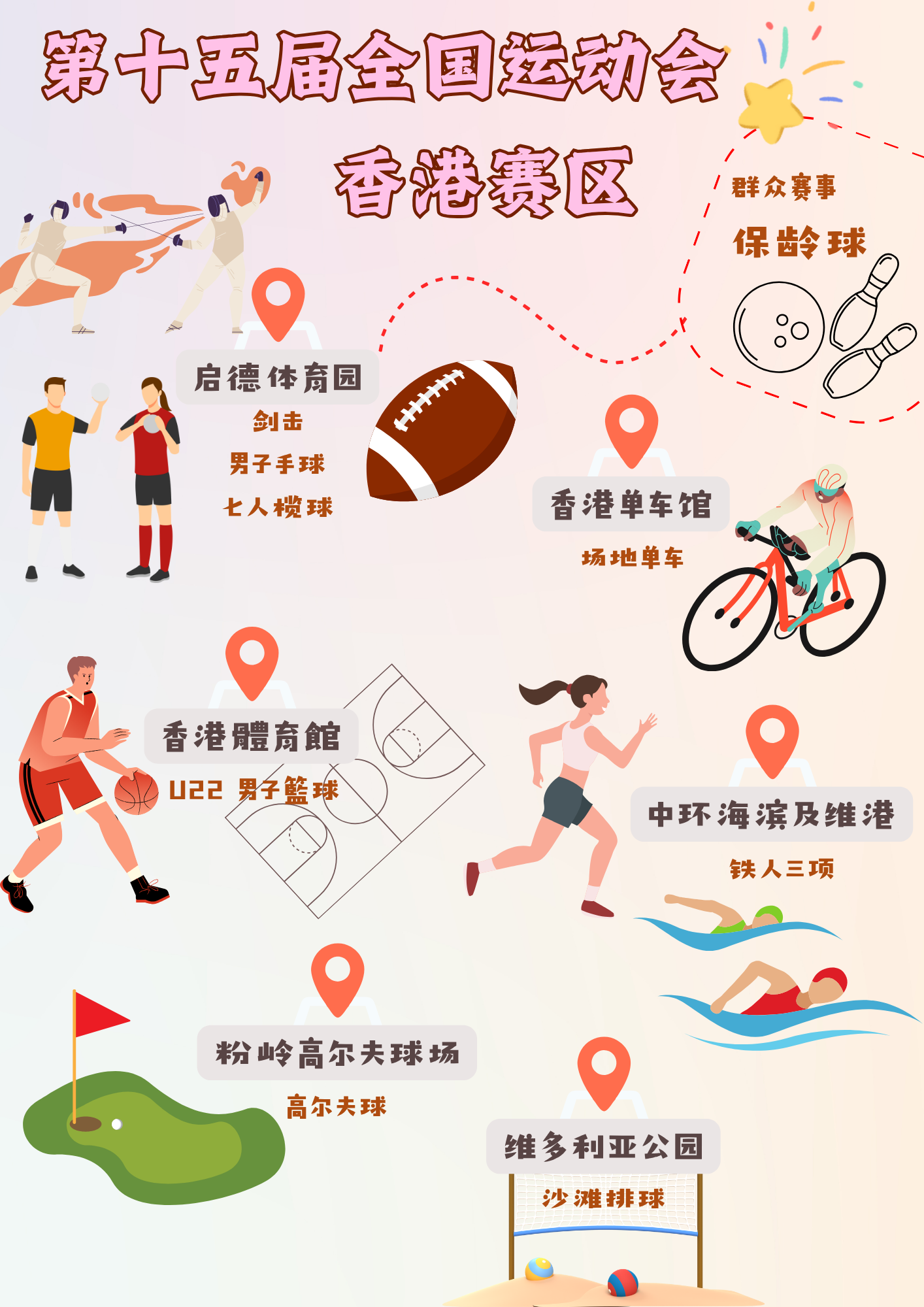 第十五届全运会揭幕!本届赛事是香港首次作为承办地区,在港九新界各个场地举行8个竞技项目及1项群众赛事。家长除了与子女一起观看赛事外,还可以透过特区政府设计的AR 互动小程序「全运GOAL全城GO」,一起动起来,走遍香港各地,解锁互动小游戏,寓教于乐。