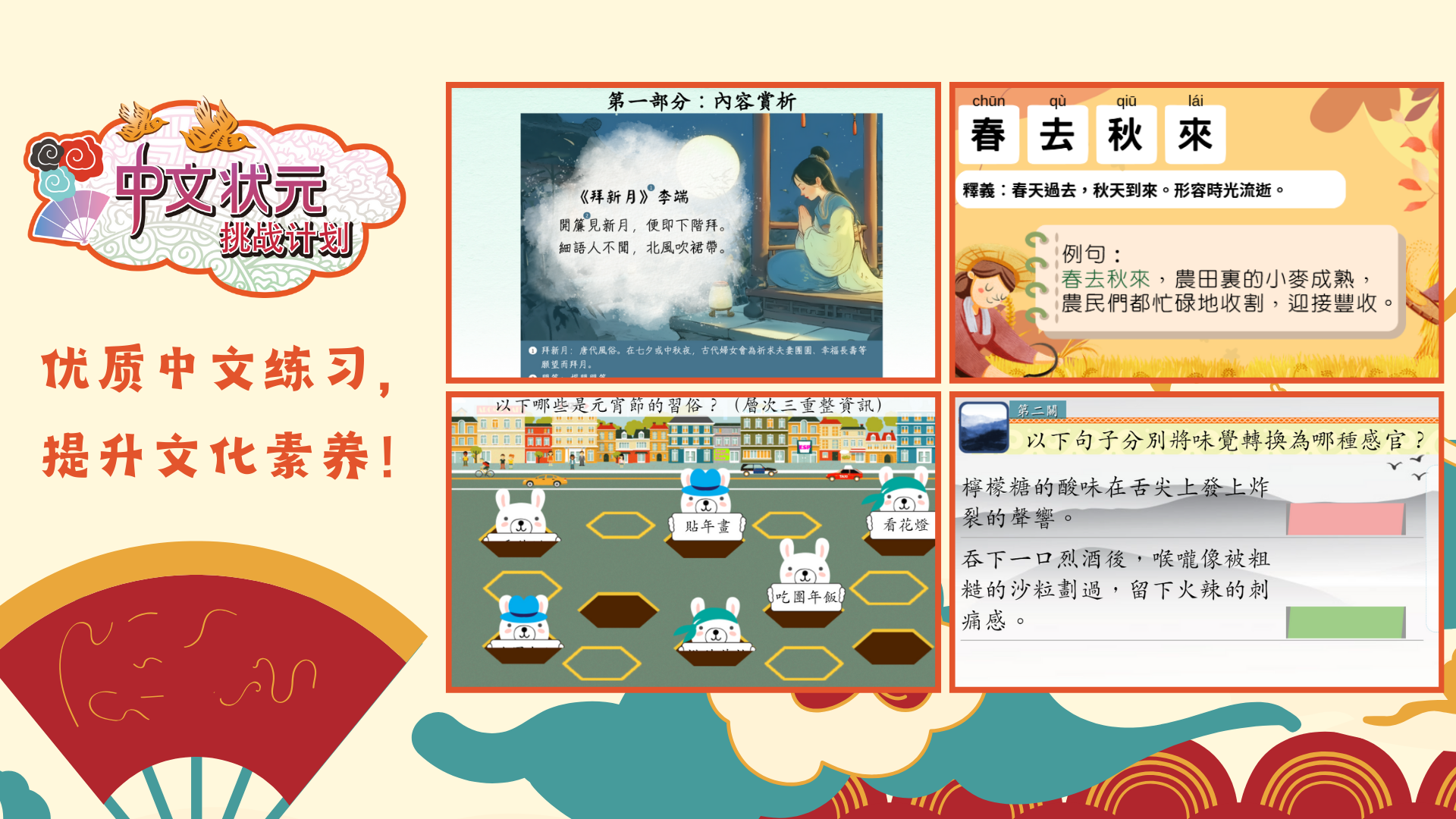 不少家长也关心子女如何学好中文,教城每周三也会推出多元化的语文练习。登入练习后不单能学成语,更能挑战阅读理解及认识古文,实在一举多得。家长也可以陪伴子女一同学习,一同测试自己的中文能力!