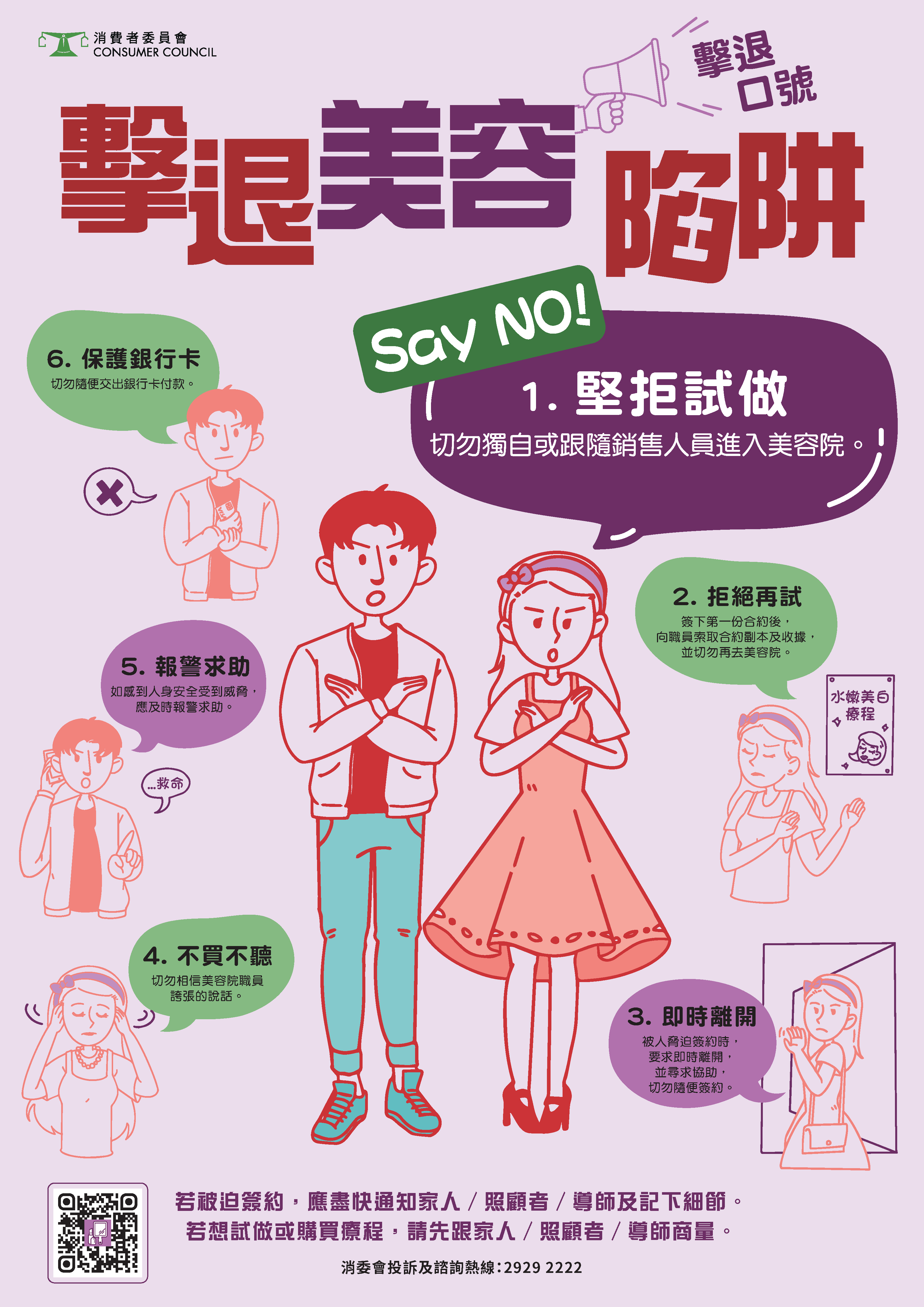 近年消費者委員會 (下稱「消委會」)所接獲的投訴個案中,不少涉及健身或美容中心透過不良營商手法威迫消費者購買健身或美容產品或服務。當中包括自閉症譜系障礙消費者、輕度智障消費者及一般精神障礙消費者(下稱「目標對象」)被誘騙簽下預繳式服務合約。在部分個案中,有關消費者因商戶拒絕退款而蒙受重大金錢損失及精神壓力,最終向相關商戶提出訴訟。有見及此,消委會現正分階段推出全新的「特殊需要人士支援計劃」,協助弱勢社群提高警覺及擊退常見的銷售陷阱,果斷說不。