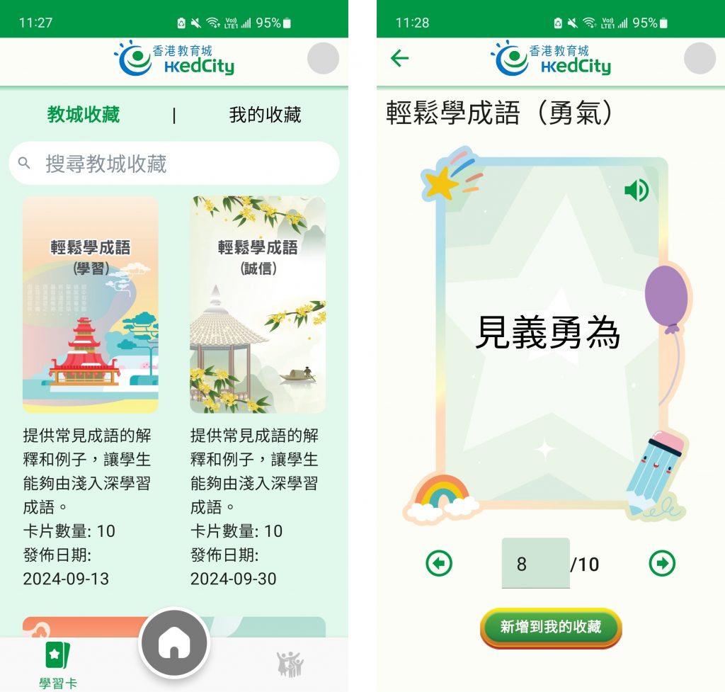 家長亦可利用「教城學生」應用程式當中的學習卡功能,讓子女透過實用及內容豐富的學習卡輕鬆自主學習,溫故知新,令學習變得有趣。