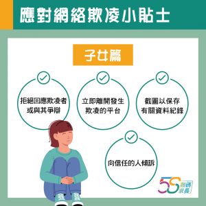 - 如孩子或自己被網絡欺凌時,如何應對?